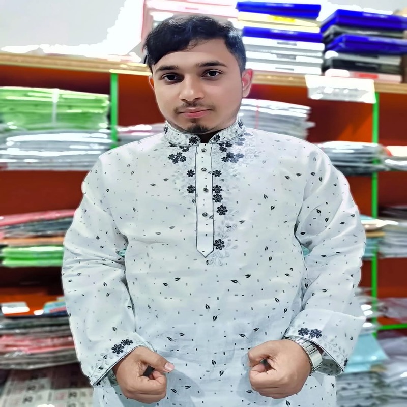 Adhi Dhuti Kaporer Embroidery Panjabi (Black Prints)